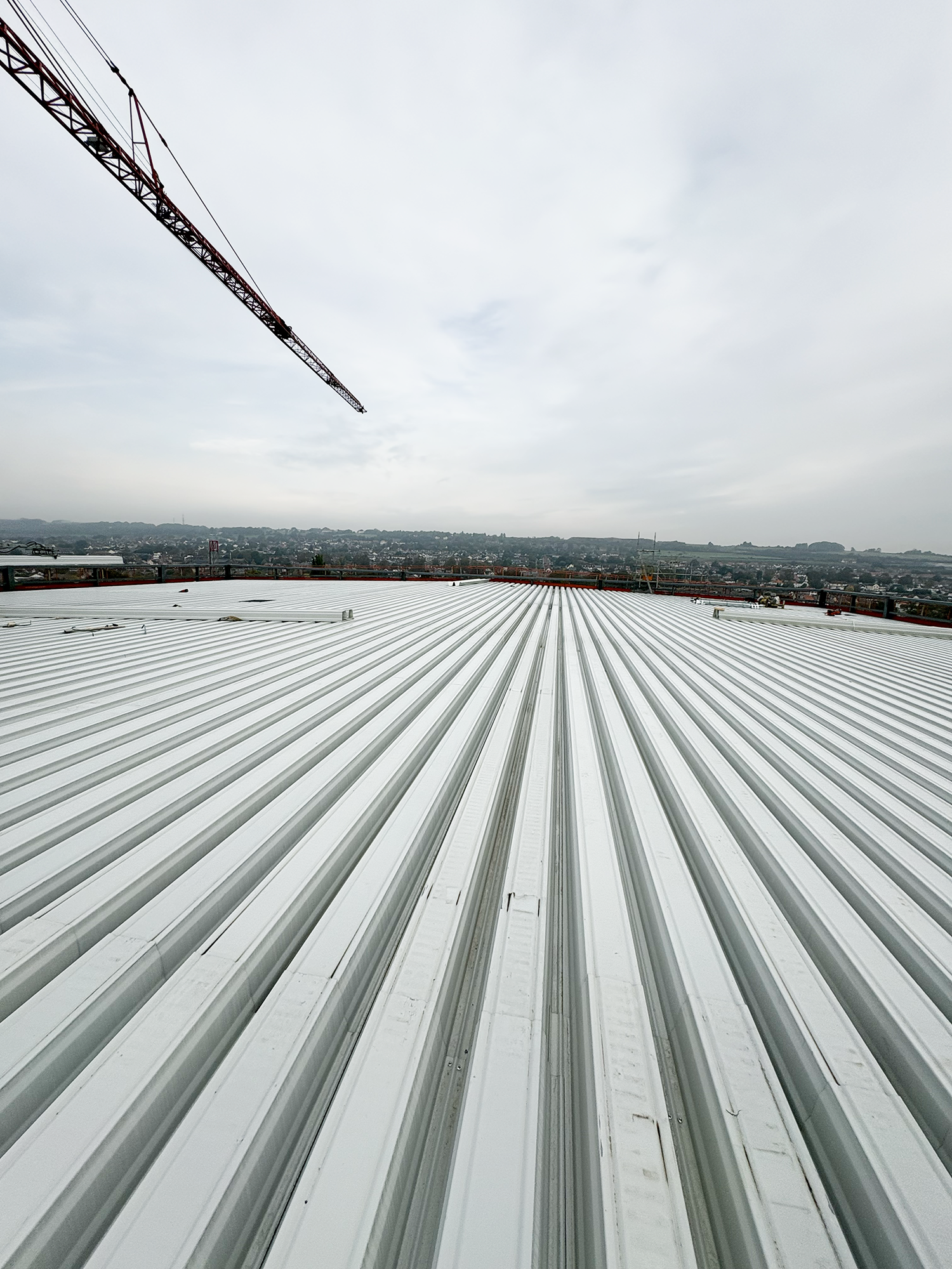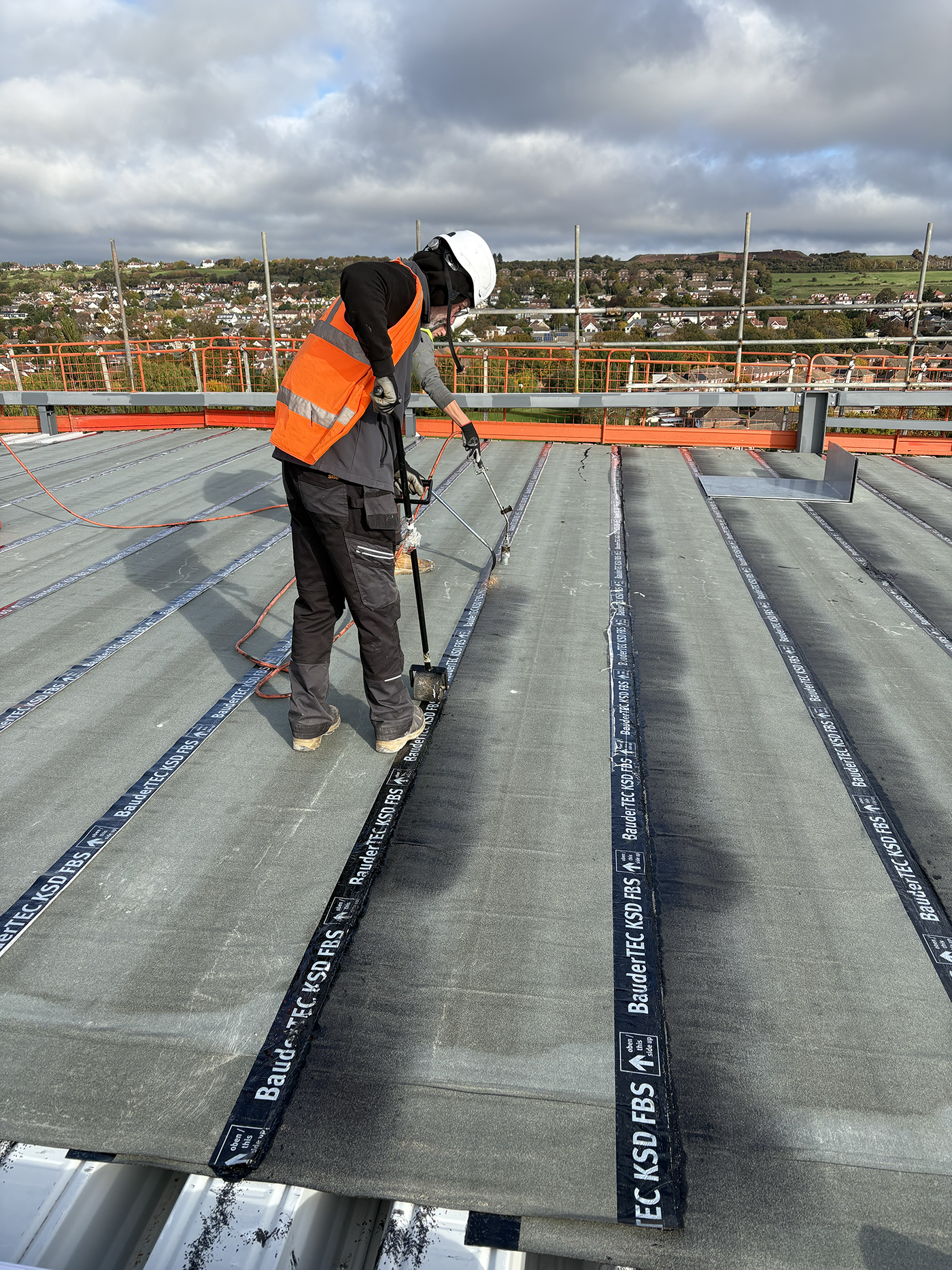 Our scope includes the installation of 300m² of Bauder hot-melt roofing to the viewing terrace, providing durable waterproofing in high-footfall areas, and 1,800m² of built-up felt on the main metal-decked roof. Bauder PV supports are also being installed to accommodate future solar installations.