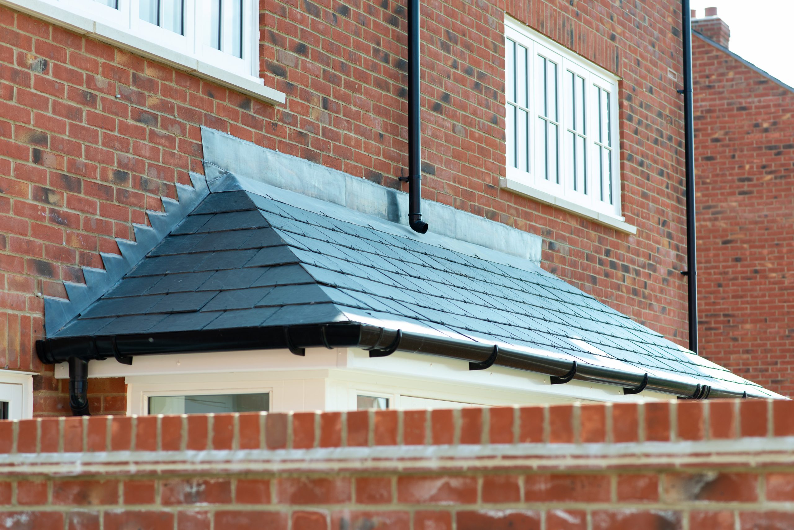 Our scope included the supply and installation of Edilians Phalempin clay tiles and natural slate across the development. Extensive bespoke leadwork, including canopies, dormers, bay roofs, and decorative detailing, was required to complement the variety of property styles, including garages and carports. We worked closely with Croudace Homes to ensure a balance between aesthetic appeal and heritage considerations.