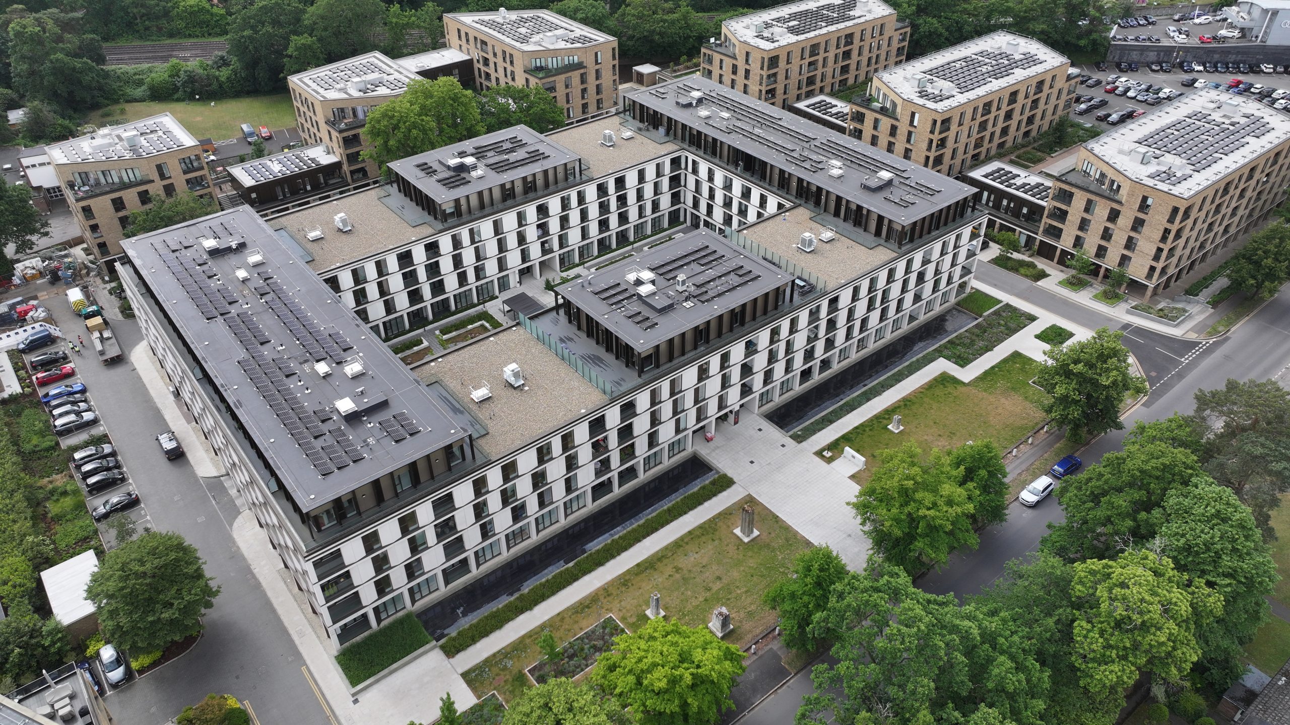 Blending contemporary geometric design with preserved historic features, including elements from the original listed building and its iconic bird sculpture. The project required a careful balance of modern performance and heritage sensitivity. Our scope included flat roofing and photovoltaic installations, supporting both the aesthetic vision and sustainability goals of the development.
